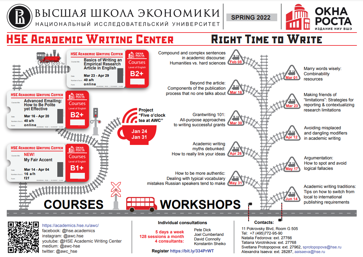 Right time to write – мероприятия Центра академического письма ВШЭ в январе-июне 2022 года (+инфосхема в pdf):